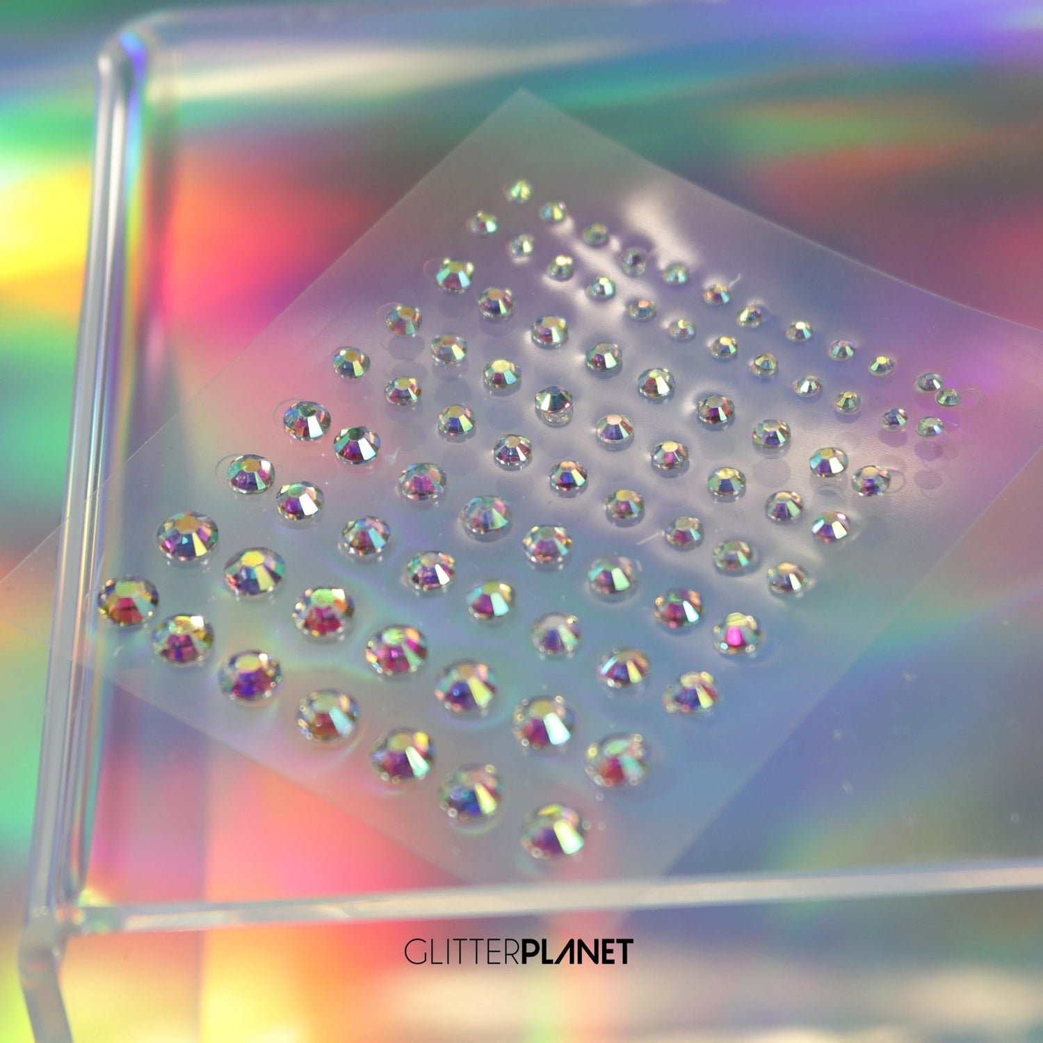 The gems can be used on the face, collar bones, chest, forehead, eyebrows, cheeks, around your eyes(you must be cautious when placing near eyes)