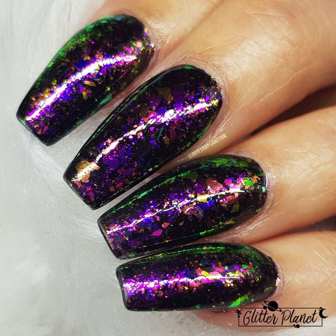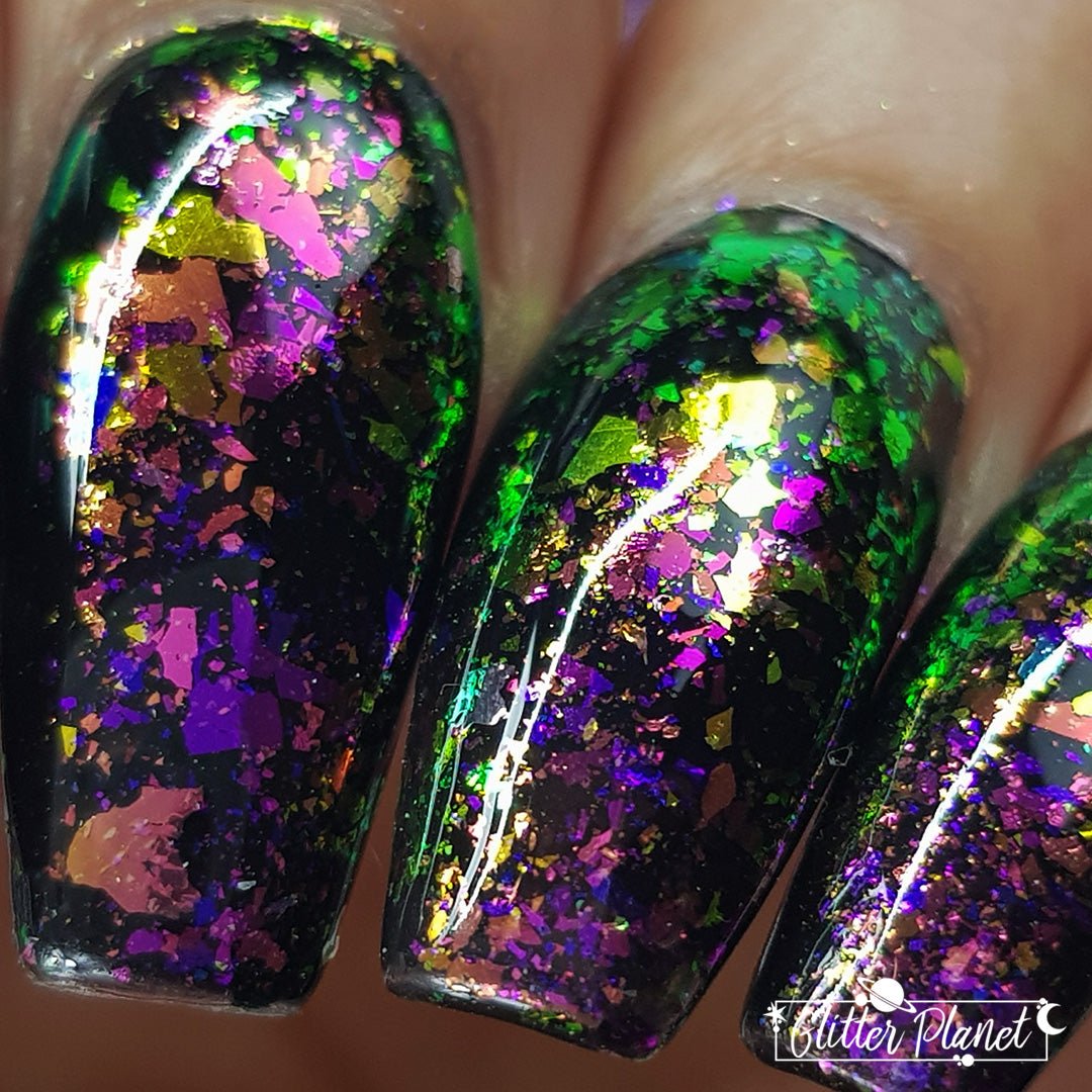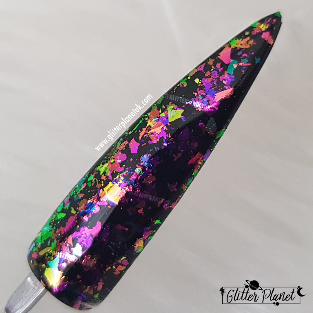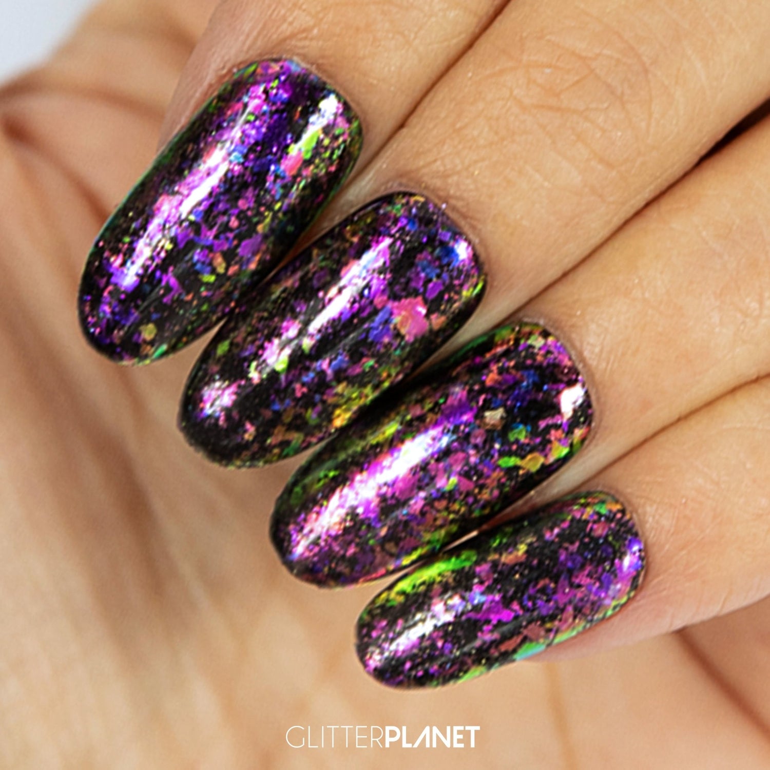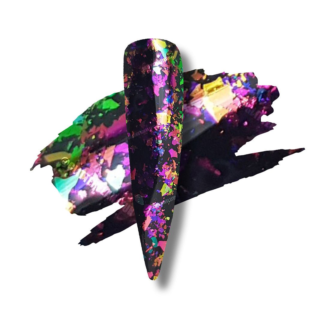 You can also use our flakes with acrylic and builder gels the same way you would our glitters, but remember very little goes along way so apply sparingly. Pick up the flakes with a 'wet' brush and pat in until desired effect is created.