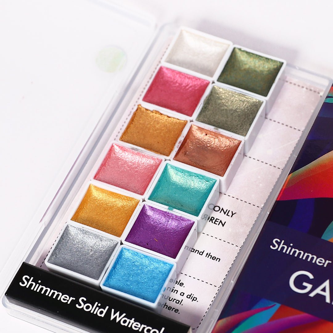 Glam up your nails with our Galaxy Shimmer Water Colour Nail Art Paints - iridescently rich and fabulously shimmery! Transform your nails with a pearlescent sheen. You will receive 12 colours encased in a handy palette with lid for storage. Activate the paints with water and apply over a matte surface.