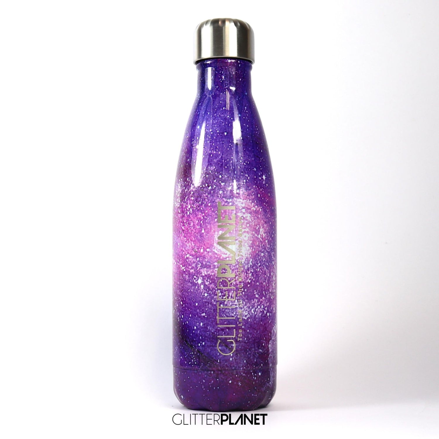 Drink in the awe-inspiring beauty of Glitter Planet's Purple Galaxy Water Bottle. Its mesmerising design is out of this world—perfect for taking with you on whatever magical journey the day brings! 500ml of glittery space-inspired brilliance that'll make all your friends green with envy!