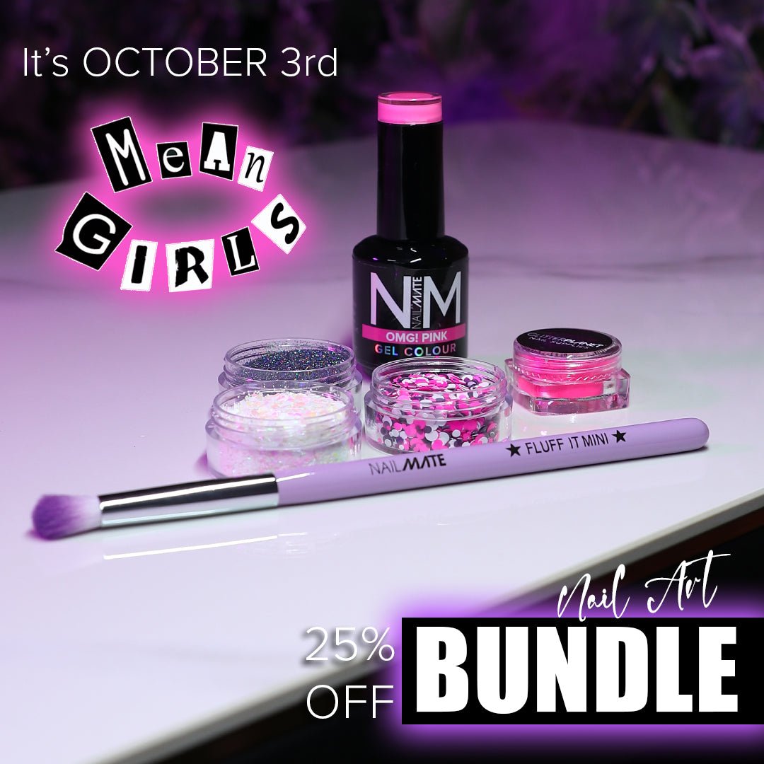 Unleash your inner “mean girl” this October with the Mean Girl Nail Art Bundle, packed with all the pink perfection you need to slay your sets. From bold neon vibes to glitter glam, this bundle is your go-to for iconic, attitude-filled nails.